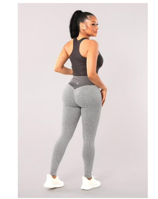High Waist Two Tone Textured Honeycomb Butt Scrunch Yoga Leggings – Gray, White